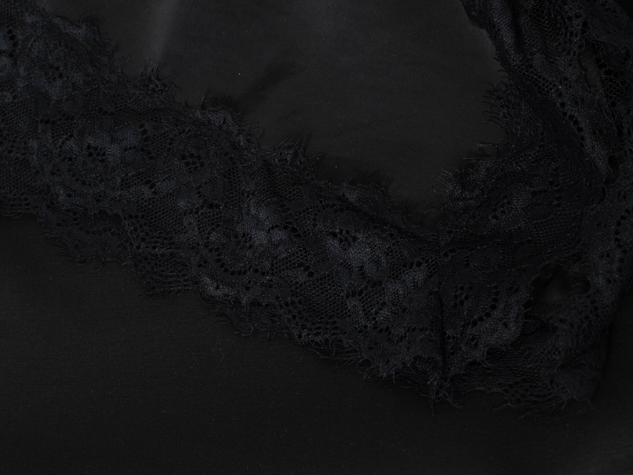 - Asymetryczna halka wszyta u dołu bluzy zakończona koronką delikatnie wystaje spod niej, tworząc efekt warstwowy i dodając stylizacji lekkości oraz elegancji.